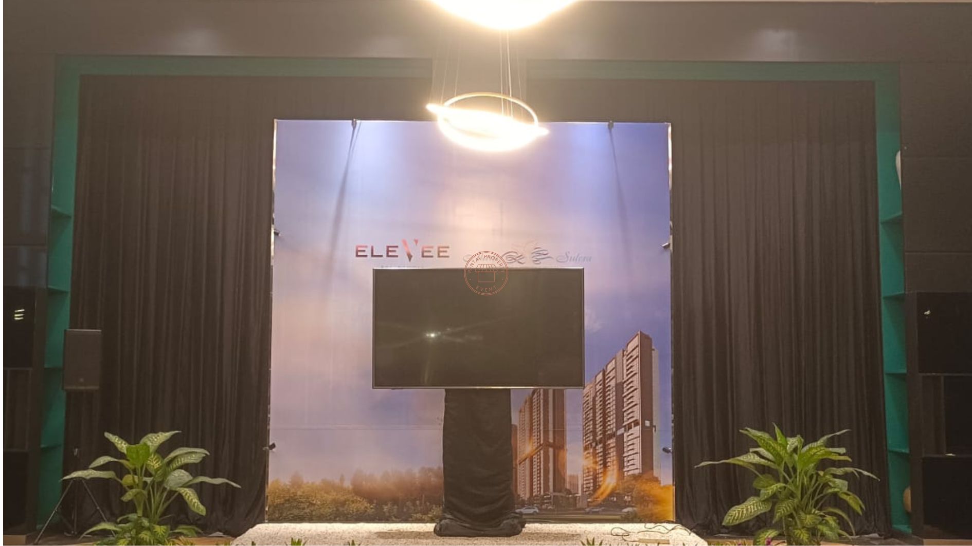 - Backdrop custom berdesain visual gedung EleVee dengan branding Alam Sutera yang tampil elegan dan profesional.